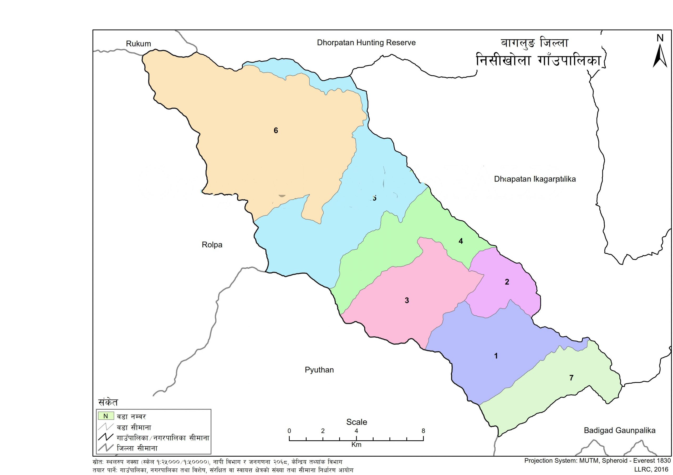 गण्डकी प्रदेश अन्तरगत बागलुङ जिल्लाका १० स्थानीय तह मध्येको एक निसीखोला गाउँपालिका साविकका ४ गा.वि.स हरु ( देवीस्थान, बोहोरागाउँ, निसी र राजकुत) मिलेर ७ वटा वडाको एउटा गाउँपालिका बनेको छ। समुन्द्रि सतहबाट ८८९ देखी ४००० मिटर सम्मको उचाईमा फैलिएको यस गा.पा. को कुल क्षेत्रफल २४४.३७ वर्ग कि.मी. रहेको छ । पुर्वि देशान्तर ८२ डिग्री ५३ मी देखी ८२३ डिग्री १० मी र उत्तर अक्षाशं २८ डिग्री २८ मी देखी २८ डिग्री १७ मी मा फैलिएको यस गाउँपालिकाको कुल जनसङ्ख्या २३,३०० र कुल घरधुरी ४,८९३ रहेको छ ।
